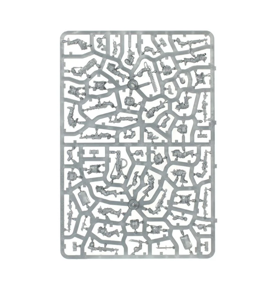 This kit comprises 131 plastic components, and is supplied with 10x Citadel 25mm Round Bases. Also included is a Cadian Infantry Transfer Sheet, with 597 transfers featuring numerals, squad markings, and Cadian regimental heraldry.