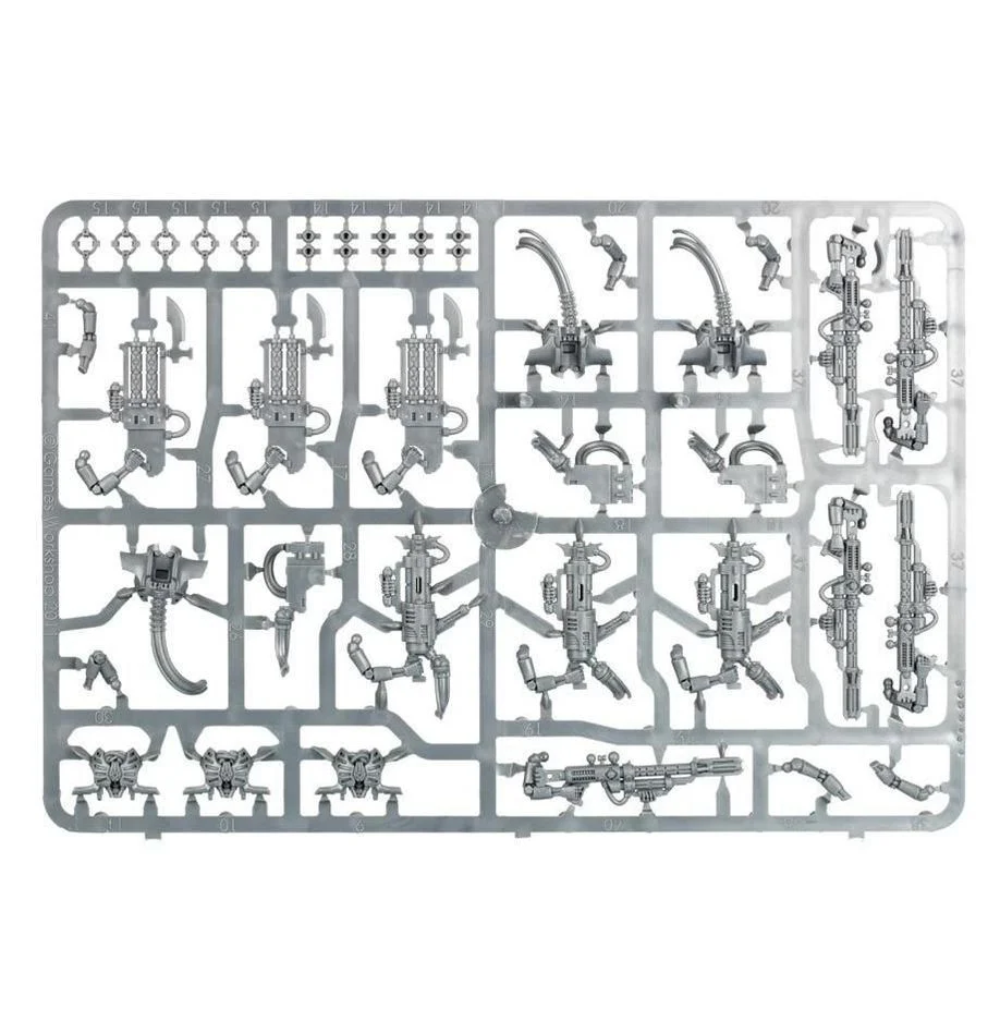 This multi-part plastic boxed set contains 80 components, two Necron transfer sheets and five Citadel 32mm Round Bases with which to build five Necron Immortals or five Necron Deathmarks.